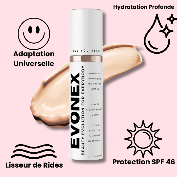 Only Evonex couvre instantanément, rajeunît avec le temps et protège votre peau chaque jour.